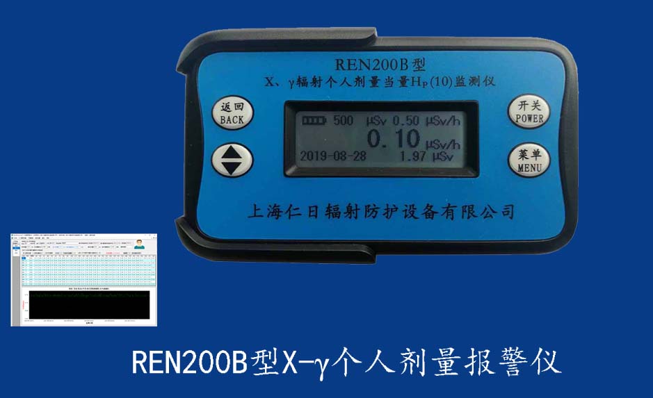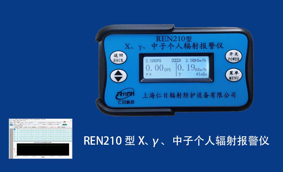 REN210型X、γ、中子個人輻射報警儀內(nèi)置SiPM和鋰玻璃晶體組成中子探測器儀器,采用反照率方式探測中子射線,同時也能探測X、γ射線。因此它可同事監(jiān)檢測X、γ、中子三種射線。能顯示工作場所的劑量當量率和累積劑量,更換電池時,日期及累積數(shù)據(jù)能永久保存?蛇x配RenRiPersonal個人劑量管理軟件,該軟件可存儲多個人的歷史數(shù)據(jù),能記錄日累積、月累積、年累積、輻照時長、計算平均劑量率、扣除或不扣除本底輻射,且以文字和圖譜的方式展現(xiàn)數(shù)據(jù)。廣泛應用于環(huán)保、化工、水泥、煤礦、土木工程、石油、醫(yī)院、疾控、進出口商檢、核電、加速器、機場、中子源庫和其他安檢、邊境控制海關(guān)檢測等領(lǐng)域中的工作人員進行個人安全防護監(jiān)測及放射性提示。
